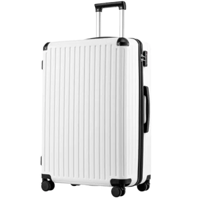 COOLIFE Suitcase Trolley Carry on Hand Cabin Luggage Hard Shell Lightweight ABS Material with TSA Lock Telescopic Handle and 4 Dual Spinner Wheels (White, 28 Inch)