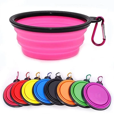 Coolon Collapsible Dog Bowl,Collapsible Water Bowls for Cats Dogs, Portable Pet Feeding Watering Dish,Portable Food Bowl with Carabiner (Medium(650ML), Pink)