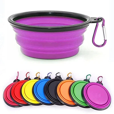Coolon Collapsible Dog Bowl,Collapsible Water Bowls for Cats Dogs, Portable Pet Feeding Watering Dish,Portable Food Bowl with Carabiner (Medium(650ML), Purple)
