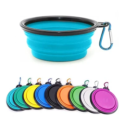 ❤【COLLAPSIBLE DESIGN】: Convenient collapsible design for saving space, simply stretch and fold away,which are good for traveling,hiking,camping,outdoor or indoor use. ❤【PORTABLE & CONVENIENT】: The collapsible dog bowls are great pet travel bowls, lightweight and easy to carry with climbing buckle. It can attach to belt loop, backpack, leash or other locations.suitable for all small to medium dogs, cats and other animals to store water and food when going outside. ❤【DURABLE & SAFE】 : These dog bowls are made of high quality silicone , odorless, durable and friendly.Very Safe for your lovely pet to use.Reusable and Eco-friendly, easy for storage and transportation. ❤【SIZE】: 5.1 X 3.5 X 2.1 inch(13*9*5.5 cm) , each bowl holds up to 12 fluid ounces of water or 1.5 cups of pet food. The dog bowls can be collapsible to different sizes, 0.5 inches when compact - Simply Pop-Up and then fold away. ❤【EASY TO CLEAN】The portable pet food water bowls can be rinsed or wiped clean easily. Will not collapse when filled with water, gives the bowl greater longevity over other similar products.