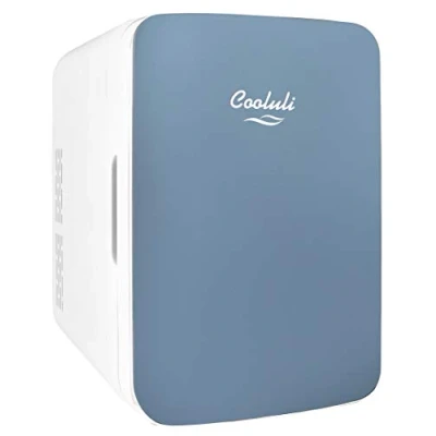 Cooluli 10L Mini Fridge for Bedroom Car, Office Desk & College Dorm Room 12v Portable Cooler Warmer Food, Drinks, Skincare, Beauty Makeup AC/DC Small Refrigerator with Glass Front, Blue
