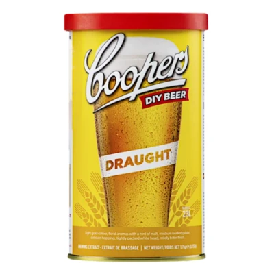 1.7Kg Kit, Makes 40 Pints of Quality Draught Beer, Full instructions included. A Full And Flavoursome Beer Displaying A Clear Clean Taste With A Subtle Bitter Flavour. Coopers Draught Displays A Good Head With A Fresh Bright Colour Requires 1 kg Of Sugar Ready In 14 Days, Flavour improves over 2 Months Tonys TipsAn authentic light and flavoursome result is obtained due to Coopers diligent adherence to Original brewing methods, yet . . . . only a small yet, this brew I feel further benefits from some minor adjustments (to suit my demanding Palate for Strong Ale of course) I would add a good Beer kit enhancer 60/40% with Brewing sugar and even a little dark Malt to tune the colour to look more like beer than lager. Just to round it off I like to add strength and colour with an extra 200 g of Dark brown sugar! Mmmmm . . . . Too much! . . . . much too much! two too much!