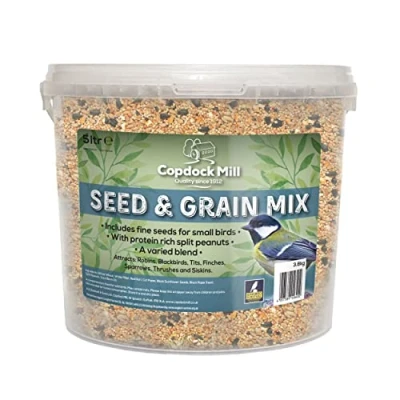 WILD BIRD SEED AND GRAIN — a genuine all-round quality and varied blend, including black rape, red dari, soya bean oil, cut maize, white millet and whole wheat. Includes fine seeds perfect for small birds BIRDS YOU WILL ATTRACT — this nutritous all year-round bird food will attract a wide arrange of small garden birds including Robins, Blackbirds, Tits, Finches, Sparrows, Thrushes and Siskins 100% NATURAL INGREDIENTS — we use the finest natural ingredients in our wild bird food, including protein-rich split peanuts for wild birds and oil-rich black sunflower seeds! We've also included white millet to aid healthy digestion HOW TO USE — ideal for use with bird seed feeders and on table tops. Simply add the Copdock Mill Bird Seed and Grain Mix to your feeder and hang out for the wild birds to enjoy all year round! OVER 40 YEARS OF QUALITY BIRD FEED — Copdock Mill has been helping the UK’s indigenous and visiting bird population to thrive all year round for over 40 years with our range of specially formulated wild bird foods!
