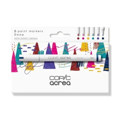 COPIC acrea Set of 6 Deep Paint Markers with Water and Pigment Based Ink, Line Width 0.8 1.2 mm