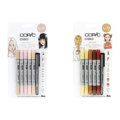 Copic Ciao Coloured Marker Pen 5+1 Bundle, Hair Tones 1 And 2 Themed Sets, For Art & Crafts, Colouring, Graphics, Highlighter, Design, Anime, Professional Beginners, Supplies, Colouring Books