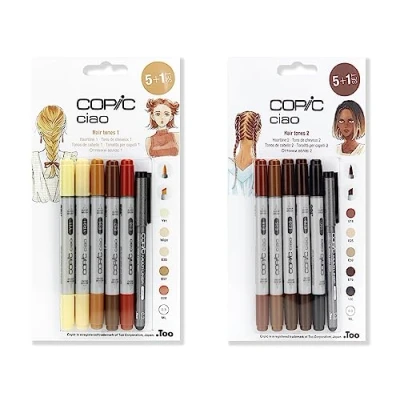 Copic Ciao Coloured Marker Pen 5+1 Bundle, Portrait 1 And 2 Themed Sets, For Art & Crafts, Colouring, Graphics, Highlighter, Design, Anime, Professional Beginners, Supplies, Colouring Books