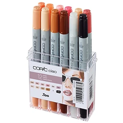 Copic Ciao Coloured Marker Pen Set of 12 Portrait, For Art & Crafts, Colouring, Graphics, Highlighter, Design, Anime, Professional Beginners, Supplies Colouring Books