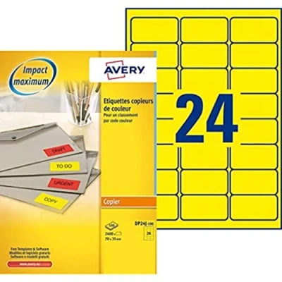 Avery Labels for address, 70 x 35 mm/Yellow Fluo Manufacturer: Avery Manufacturer's number: DP24J 100. FR