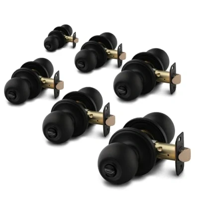 Copper Creek Matte Black Door Knobs Round Colonial with Privacy Locking Function for Home Improvement Interior Fits All Standard Knob Bedroom & Bathroom 6 Pack
