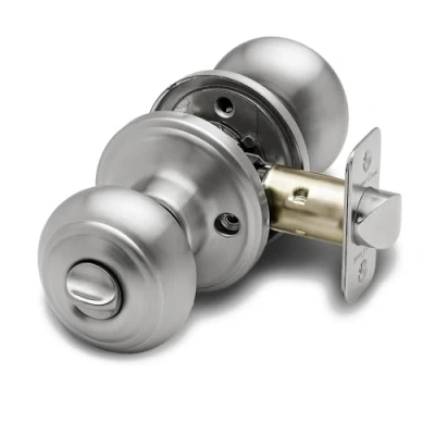 ANSI Grade-3 Security Privacy Ball Knob Privacy locking Function: Ideal for bedrooom and Bathroom use only. "New" exterior privacy release button: operate with coin or standard screwdriver only. No Privacy key required. Does not have a keyed cylinder, not for use where keyed security is required. Steel Round Corner Adjustable Latch (not suitable for Drive-in application). Nickel plated bolts. International products have separate terms, are sold from abroad and may differ from local products, including fit, age ratings, and language of product, labeling or instructions., Weight: 0.99 Pounds, Manufacturer: Copper Creek Hardware