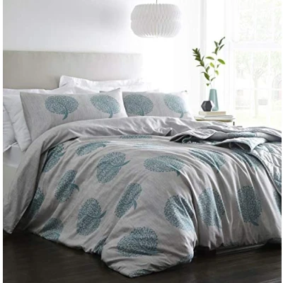 Contemporary Coppice tree pattern in calming tones of Teal on a beige background 100% 200 thread count cotton percale Double duvet cover (200 x 200cm) and 2 pillowcases (50 x 75cm) Machine washable