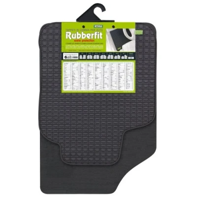 Rubberfit fit-6 rubber car mats. Pair of front mats for cars, MPV and off-road High quality rubber mats with special tub design that allows you to collect and hold dust, rain and snow. Easily washable and with non-slip safety backing. Does not damage shoes and heels. Excellent resistance to ageing. Colour: Black. Made in Europe.