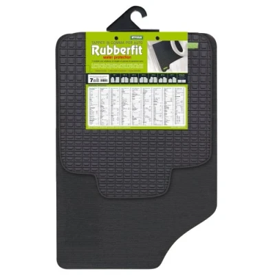 Rubber Car Mats "Rubberfit" fit-7 Pair of front mats for cars, minivans and off-road Highest quality rubber mats with a special tray design that allows you to collect and retain dust, rain and snow. Easily washable and with non-slip safety backing. Does not damage shoes and heels. Very good ageing resistance. Colour: black. Made in Europe.