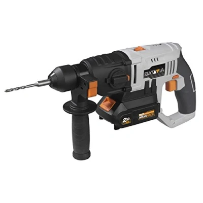 AmazonThe Batavia MAXXPACK 2 Mode SDS Drill has been developed to cope with heavier drilling applications which are normally associated with a mains powered machine. It has 2 modes: normal drilling and hammer drilling and takes SDS Plus drill bits. The front handle provides additional stability during use and the soft grip rear handle has knuckle protection. 2 variable speeds allow you to drill into a wide variety of materials. Comes as a Bare Unit, No Battery or Charger. Specification: Tool Holder: SDS Plus No Load Speed: 0–300/0–1,000/min. Impact Rate: 0-5,000/bpm Impact Energy: 0.8 Joules Capacity: Wood: 20mm, Metal: 10mm, Concrete: 20mm, Weight: 3.8139971326 pounds, Manufacturer: Batavia