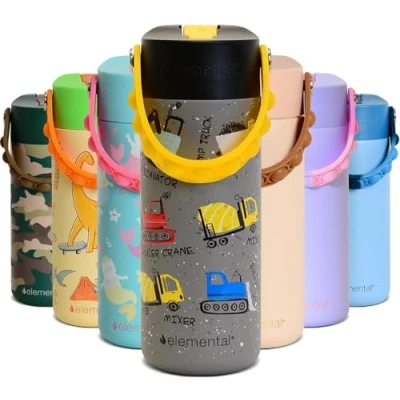 ๐๐๐ฟ๐ฎ๐ฏ๐น๐ฒ ๐ฆ๐๐ฎ๐ถ๐ป๐น๐ฒ๐๐-๐ฆ๐๐ฒ๐ฒ๐น ๐๐ผ๐ป๐๐๐ฟ๐๐ฐ๐๐ถ๐ผ๐ป: Built to last, the Elemental Core Water Bottle for Kids is made with stainless steel to withstand daily use. Its double-wall insulation keeps drinks cool for up to 24 hours. This reliable kidโs water bottle is perfect for school or outdoor adventures, offering a lightweight design thatโs easy for little hands to carry and use. ๐๐ฒ๐ฎ๐ธ-๐ฃ๐ฟ๐ผ๐ผ๐ณ ๐ฎ๐ป๐ฑ ๐๐ผ๐ป๐๐ฒ๐ป๐ถ๐ฒ๐ป๐ ๐ฆ๐๐ฟ๐ฎ๐: No spills or leaks with the leakproof water bottle design! The lid features a straw for easy sipping, making this bottle ideal for kids. Whether at school or on the go, the water bottle with straw ensures a mess-free experience. The secure lid seals tightly, so your child can toss it in their bag without worrying about leaks. ๐๐๐ป ๐ฎ๐ป๐ฑ ๐๐๐ป๐ฐ๐๐ถ๐ผ๐ป๐ฎ๐น ๐ฃ๐ผ๐ฝ-๐ถ๐ ๐๐ฎ๐ป๐ฑ๐น๐ฒ: The pop-it handles add fun and functionality to the kid's insulated water bottle. Itโs perfect for little fingers to grasp, making it easy to carry and open. Whether your child is heading to class or playtime, the handle offers comfort and convenience. A playful design of our Stainless steel water bottle that also supports daily hydration in a practical, durable package. ๐๐ถ๐๐ต๐๐ฎ๐๐ต๐ฒ๐ฟ ๐ฆ๐ฎ๐ณ๐ฒ ๐ฎ๐ป๐ฑ ๐๐ฎ๐๐ ๐๐ผ ๐๐น๐ฒ๐ฎ๐ป: The Elemental Core Water Bottle for kids is designed for busy families with its dishwasher-safe feature. Cleaning is simple, ensuring the bottle remains hygienic and ready for everyday use. No more worrying about odors or metallic tastes; this insulated water bottle with straw ensures your childโs water stays fresh and clean every time. ๐๐๐ฝ ๐๐ผ๐น๐ฑ๐ฒ๐ฟ ๐๐ผ๐บ๐ฝ๐ฎ๐๐ถ๐ฏ๐น๐ฒ ๐ณ๐ผ๐ฟ ๐ข๐ป-๐๐ต๐ฒ-๐๐ผ ๐๐๐ฑ๐ฟ๐ฎ๐๐ถ๐ผ๐ป: Take hydration anywhere with the cup holder-compatible design of this mini water bottle. The sleek shape fits into most car cup holders and backpacks, making it a perfect travel companion. Ideal water bottles for kids, this versatile design ensures your child stays hydrated on road trips, at the park, or during sports practice, all without the worry of spills.