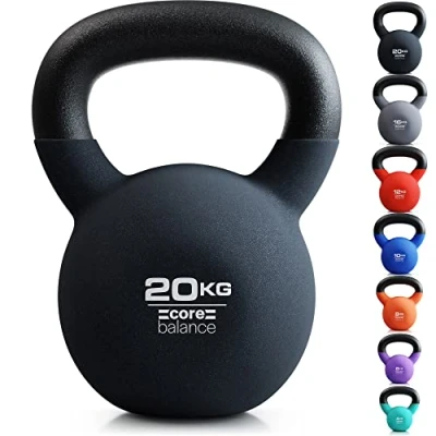 20KG KETTLEBELL WEIGHT: Looking for a kettlebell that’s perfectly balanced and comfortable to lift, grip, and swing? This 20kg Kettlebell from Core Balance is just the answer. With its cast-iron core and protective neoprene coating, it’s custom-made to help you slay your fitness goals. By combining cardio, strength, and flexibility training, it’s great for full body workouts. HEAVY-DUTY CAST-IRON CORE: Cast-iron kettlebells are stronger than concrete-filled kettlebells and have smaller handles which are easier to grip. Whereas most cast-iron kettlebells have a welded handle, this kettlebell is made from a single piece of metal for superior strength. A powder-coating provides a firm, comfy grip if your hands are sweaty. PROTECTIVE NEOPRENE COATING: The kettlebell has a soft neoprene coating, so it won’t leave scratches or make a loud noise when placed on the floor. It’s also comfortable to grip if you’re doing exercises that require you to hold it by the bell, such as sit ups to press. Both the neoprene bell and cast-iron handle can be easily wiped clean for hygienic use. FLAT BOTTOM FOR STABILITY: Doing circuit training? The kettlebell has a flat base to prevent it wobbling and easily pick it up in-between exercises. The flat base also stops it rolling along the floor, so that it’s always within easy reach when you’re working out. Storage is easy because the flat base allows you to stand it upright if you don’t have a kettlebell rack. COLOUR-CODED & LABELLED: The 20kg kettlebell has a black-coloured neoprene coating and is clearly labelled with its weight to easily identify it from other kettlebells in the Core Balance range. Kettlebells ranging from 4kg to 10kg are perfect for beginners and cardio workouts, whereas 12kg to 20kg kettlebells are great for building strength and bulking up.