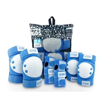 Complete Protective Gear Set: Includes knee pads, elbow pads, and wrist guards, offering all-around protection for your child's skating adventures. Growing children need flexibility—these CORE Kids pads feature adjustable elastic straps to ensure knee and elbow pads always stay secure. Whether your child is skating, biking, or just active, this padset adapts for comfort, protection, and a perfect fit. The Junior Triple Pad Set has a slip-on design that makes gearing up quick and fuss-free. CORE Kids pads fit snugly with elastic sleeves, offering comfort and full movement, so your child stays focused on skate fun while staying protected with the padset. Durable for Active Kids: Made with tough, long-lasting materials that can handle the wear and tear of active play—perfect for kids who love to stay on the move! CORE Protection means long-lasting gear for active play. This durable Junior Triple Pad Set is built tough for kids who skate daily. With skateboard protection in stylish Blue, Black, or Pink and sizes XS–S, these pads for kids keep them safe while looking cool.