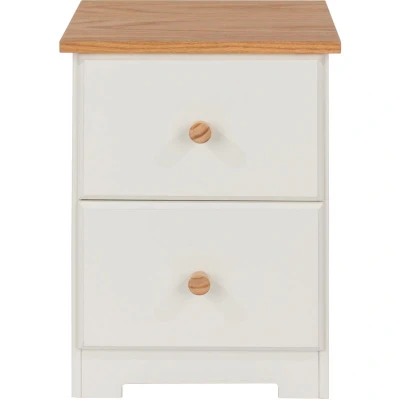 Core Products, Colorado 2 Drawer Petite Bedside Cabinet, White with Oak Vaneer Top