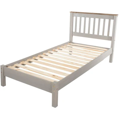General description This Single Grey Washed 3' Slatted Low End Solid Pine Bedstead Bed Frame combines traditional design with modern aesthetics. The grey wax finish enhances the natural grains and textures of the responsibly sourced South American pine, making it a stylish addition to any bedroom. The bed features a sturdy support frame and slatted base, ensuring optimal support for your mattress and a perfect night's sleep. Technical specifications Size: Width 101.6 cm, Depth 201.5 cm, Height 100 cm Height: 1000 mm Width: 1016 mm Depth: 2015 mm Material: Solid pine Finish: Grey waxed Installation Assembly: Self assembly required Usage Ideal as a centerpiece in traditionally decorated bedrooms Features a built-in headboard with a traditional bar effect Designed for reliable and sturdy use