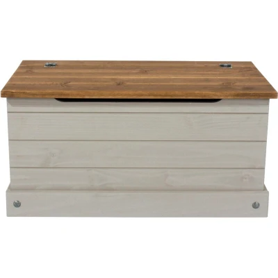 General description This stylish Corona Grey Washed Storage Trunk is crafted from solid South American Pine, featuring a rustic grey wash effect and a beautiful grey washed wax finish. It is designed with drop ring pull handles for easy access and offers a medium storage solution suitable for any setting, combining strength and reliability. Technical specifications Material: Solid Pine Finish: Grey Washed Wax Dimensions: W 902mm x D 480mm x H 445mm Assembled: Delivered Flat Packed for Self-Assembly Installation Delivered flat packed with full instructions, tools, and fixings for easy assembly.