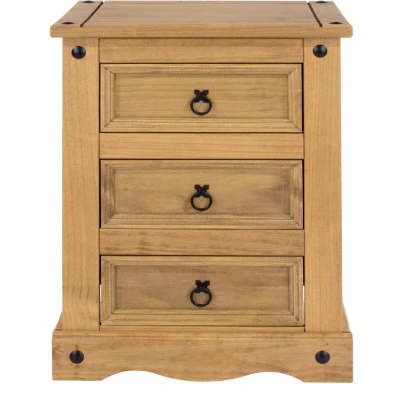 Core Products, Corona Waxed Pine 3 Drawer Bedside Cabinet