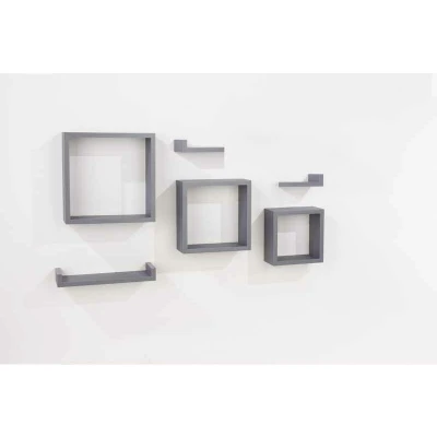 General description 6 pcs floating shelf kit in a stylish matt grey foil finish, perfect for enhancing your home decor while providing functional storage solutions. Technical specifications Dimensions: Width: 30 cm, 25 cm, 20 cm, 30 cm, 15 cm (2 pcs) Depth: 9.6 cm Height: 30 cm, 25 cm, 20 cm, 4.5 cm, 4.5 cm (2 pcs)