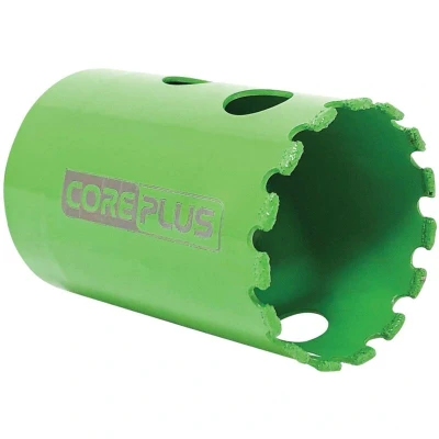 General description The CorePlus DMPHS35 Diamond Holesaw is designed for fast, clean, and professional drilling on various materials. It is suitable for cutting hard porcelain tiles, stone, cement board, fibreglass, and other similar materials. The holesaw provides precise and efficient performance with minimal water cooling required. Technical specifications Diameter: 35mm Material: Diamond-tipped for durability and cutting efficiency Technology: Vacuum brazing for long-lasting diamond bonding Kerf: Ultra-thin for reduced torque and faster cutting Compatibility and accessories Compatible with cordless drills using an arbor Can be used with an adaptor nut on angle grinders Installation Attach the holesaw to a compatible drill or angle grinder using the appropriate arbor or adaptor nut Usage Use fully dry when cutting materials like ceramic, glass, or fibreglass Use with minimal water cooling when cutting hard porcelain or stone Ensure proper alignment and steady pressure during