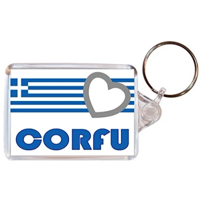 Corfu Love Greece/Greek Towns & Cities Flag Double Sided Large Keyring Name Tag Souvenir/Gift/Present