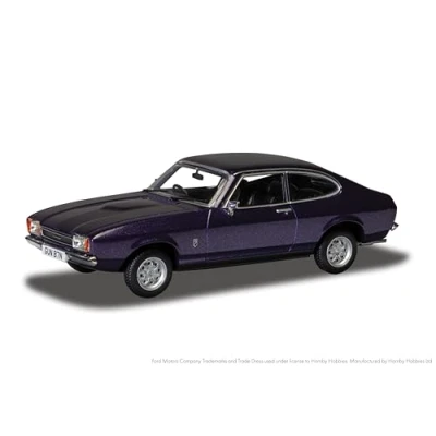 1:43 scale model Purple livery Ford Motor Company Trademarks and Trade Dress used under license to Hornby Hobbies. Manufactured by Hornby Hobbies Ltd., Manufacturer: Hornby Hobbies LTD