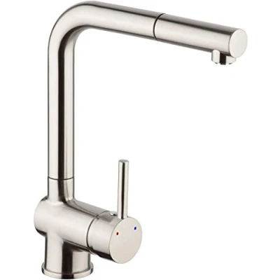Cornat Livenne LIVE535 Single Lever Sink Mixer Tap High Quality Brass Body Stainless Steel Look Extendible Hose Spray & Pivoting Spout/Low Pressure Tap/Kitchen