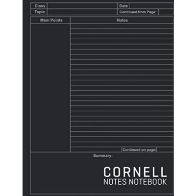 Cornell Notes Notebook: Style Note Taking Notebook for Students and Teachers with Simple Black Cover. College Ruled Composition Paper