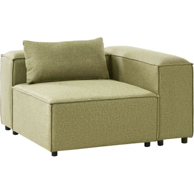 General description This corner seat module is a practical and comfortable addition to any modular sofa arrangement. Upholstered in high-quality fabric, it features soft foam padding and a wide seat area ideal for lounging. Integrated armrests and back support enhance comfort and provide structure for standalone use or as part of a larger sectional layout. With its clean lines and modern design, the unit seamlessly blends into a variety of living room styles. Whether used to complete a corner or as a compact armchair alternative, it delivers versatile seating and cohesive design. Technical specifications Product Type: Module Element Style: Modern General Color: Green Shade: Light Green Main Material: Fabric Additional Material: Plywood Filling Material: Foam Material Composition: 100% Polyester Shape: Rectangular Arm Style: Track Fabric Upholstered Back: Yes Leg Caps/ Pads: No Orientation: Symmetrical Pattern: Solid Seat Construction: Elastic Belt Seat Foam Density: 28 kg/m3 Seats Up