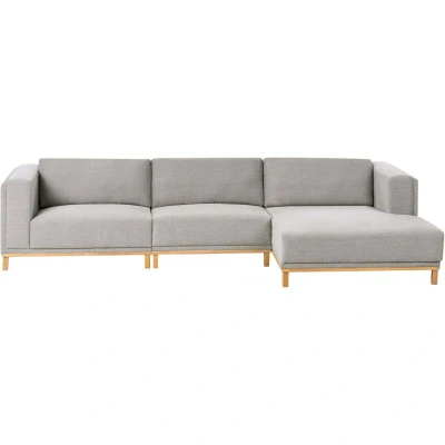 General description Add comfort and style to your living area with this modern left-hand corner sofa. Upholstered in durable, water-repellent fabric, it features thick, comfortable cushions and wooden legs that ensure stability while complementing its trendy grey color. This piece is a perfect addition to any modern or traditional interior setting. Technical specifications Product Type: 5 Seater Sofa Style: Traditional General Color: Grey Shade: Light Brown Main Material: Fabric Additional Material: Eucalyptus Wood Filling Material: Foam Material Composition: 100% Polyester Shape: L-Shaped Arm Style: Track Orientation: Left Hand Pattern: Solid Seat Construction: Wood Seat Foam Density: 30 kg/m3 Seats Up To: 5 People Dimensions: Width: 347 cm, Depth: 156 cm, Height: 84 cm, Armrests Height: 83 cm, Seat Height: 48 cm, Seat Thickness: 22 cm, Seating Surface: 325x115 cm Weight: 147 kg Weight Capacity per Person: 120 kg Installation Partial Assembly Required Estimated Assembly Time: 20-40