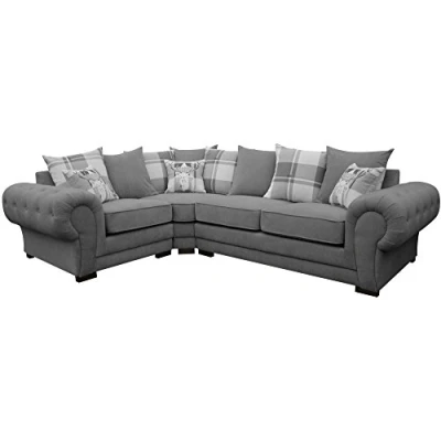 Corner Sofa Verona Fabric Left or Right Grey Brown Cream Designer Scatter Cushions Living Room Furniture (Left, Grey)