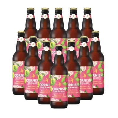 Cornish Orchards British Raspberry & Elderflower Cider 500ml Bottles 4.00% ABV (12 Pack)