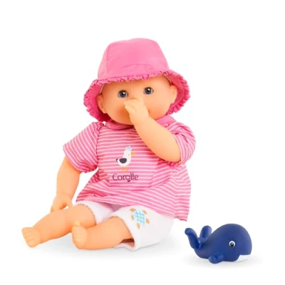 Corolle Mon Premier Poupon Oceane Soft Body Bath Doll with Animal, Sleeping Eyes, Removable Clothes, Vanilla Fragrance, 30 cm, from 18 Months, Keeps Thumb in Mouth