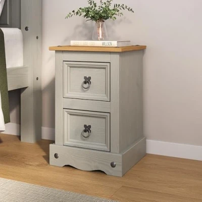 Corona Grey Wax 3 Drawer Bedside Table Mexican Pine
