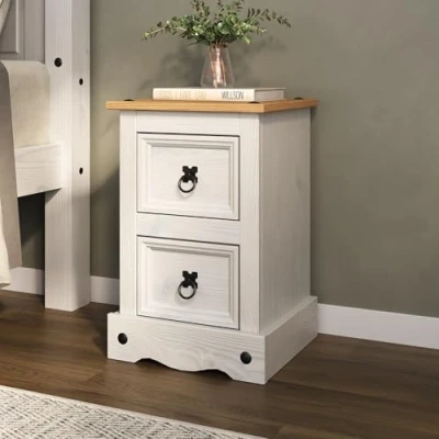 Corona Bedside Table 2 Drawer Two Tone Pine Wood Grey Mexican