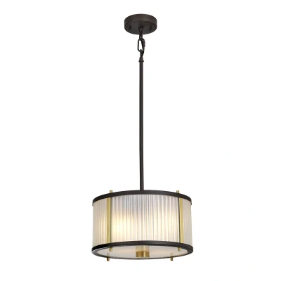 Corona Cylindrical 2 Light Pendant, Museum Bronze, Frosted Glass