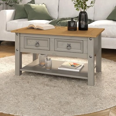 Corona Coffee Table Grey 1 Drawer Mexican Waxed Pine, Solid Wood Occasional