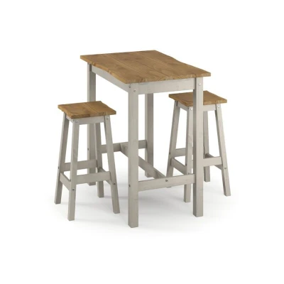 Corona Live Edge Large Rectangular High Breakfast Bar Table and Stool Set Pine Grey/Antique Waxed Flat Packed