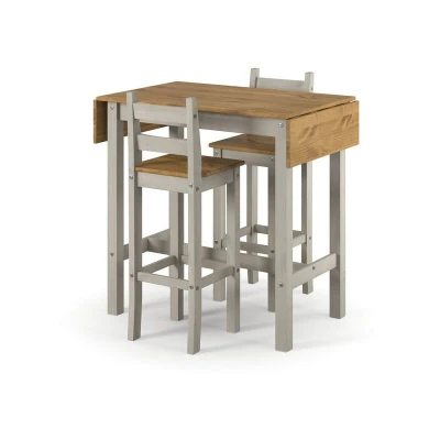 Corona Rectangular High Breakfast Bar Drop Leaf Table and Chair Set Pine L60 x W140 H100 cm Grey/Antique Waxed Flat Packed