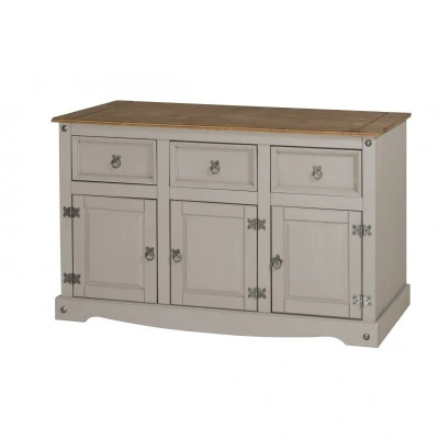 Corona Sideboard Grey 3 Door Drawer Solid Pine Wax Living Room