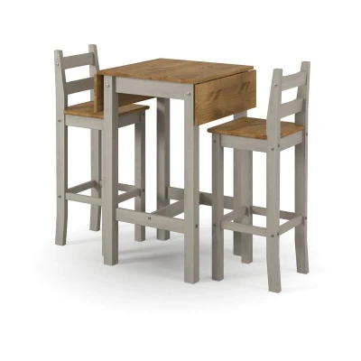 Corona Square High Breakfast Bar Drop Leaf Table and Chair Set Pine L60 x W100 H100 cm Grey/Antique Waxed Flat Packed