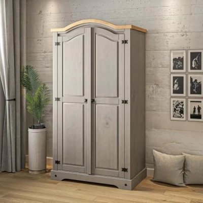 Corona Wardrobe Grey Wax 2 Door Arch Top Solid Mexican Pine