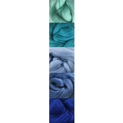 Corriedale Felting Wool 5 Different 100 gm Packs Needle Felting, Wet & Spinning.(Lagoon Blues)