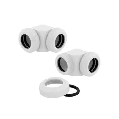 Corsair Hydro X Series XF Hardline 90 Degree 12mm OD Fittings, Twin Pack (Solid Brass Durability, Quality Finish, Double O Ring Compression Design, Easy Diameter Tubing Fitting) White