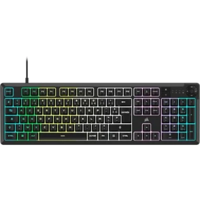 Corsair K55 Core RGB Wired Membrane Gaming Keyboard Responsive Switches Splash Resistant Ten Zone Multimedia Keys iCUE Compatible AZERTY FR PC, Mac Black