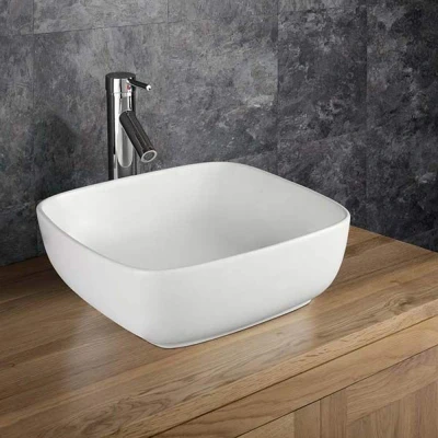 Corta 400mm White Ceramic Curved Corner Square Countertop Basin Clickbasin