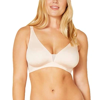 This wireless soft bra is great for all-day comfort in a smooth microfiber fabric base. Convertible bra straps can change into racer back/crisscross Sheer panel at center front, in between cups. Clean finish stitching Adjustable shoulder straps. 4 X2 hook and eye closure. Featuring a u-shaped ballet back.